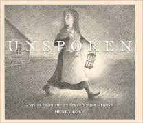 This book is a wordless picture book, and when I first read it, my heart exploded. Well not literally, but I was overwhelmed with emotions. This is one of the most beautiful wordless books I have ever read. Unspoken is the story of a young girl who comes is visited by a stranger, another young girl who is a a runaway slave. Their exchanges are wordless...unspoken but the story speaks volumes about human kindness. This book is appropriate for grades 2-5.
